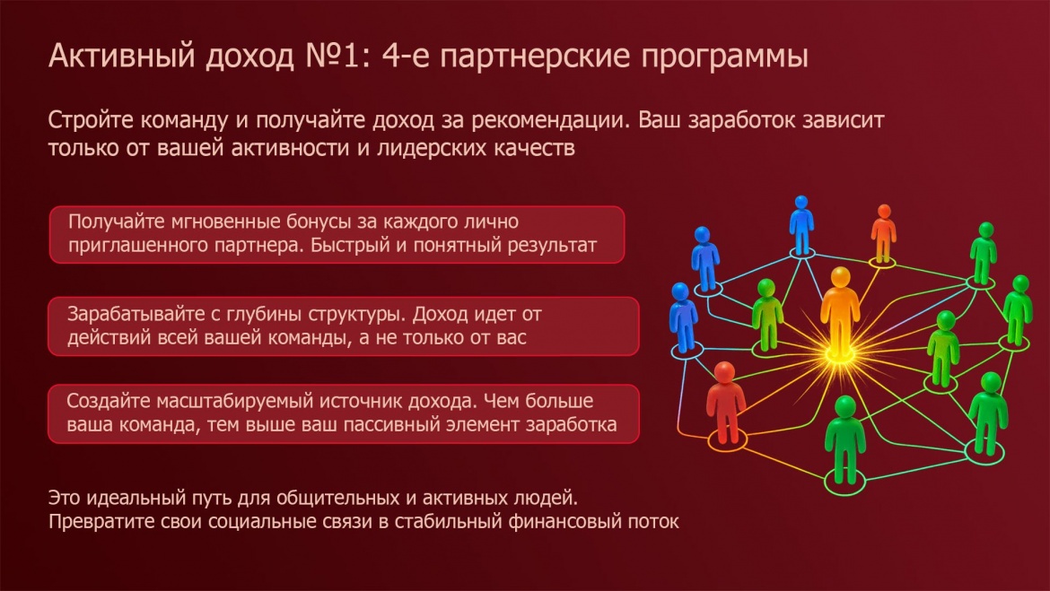 Перед вами уникальная возможность — войти в партнерский маркетинг нового поколения на старте и создать свой капитал на абсолютно честных правилах.