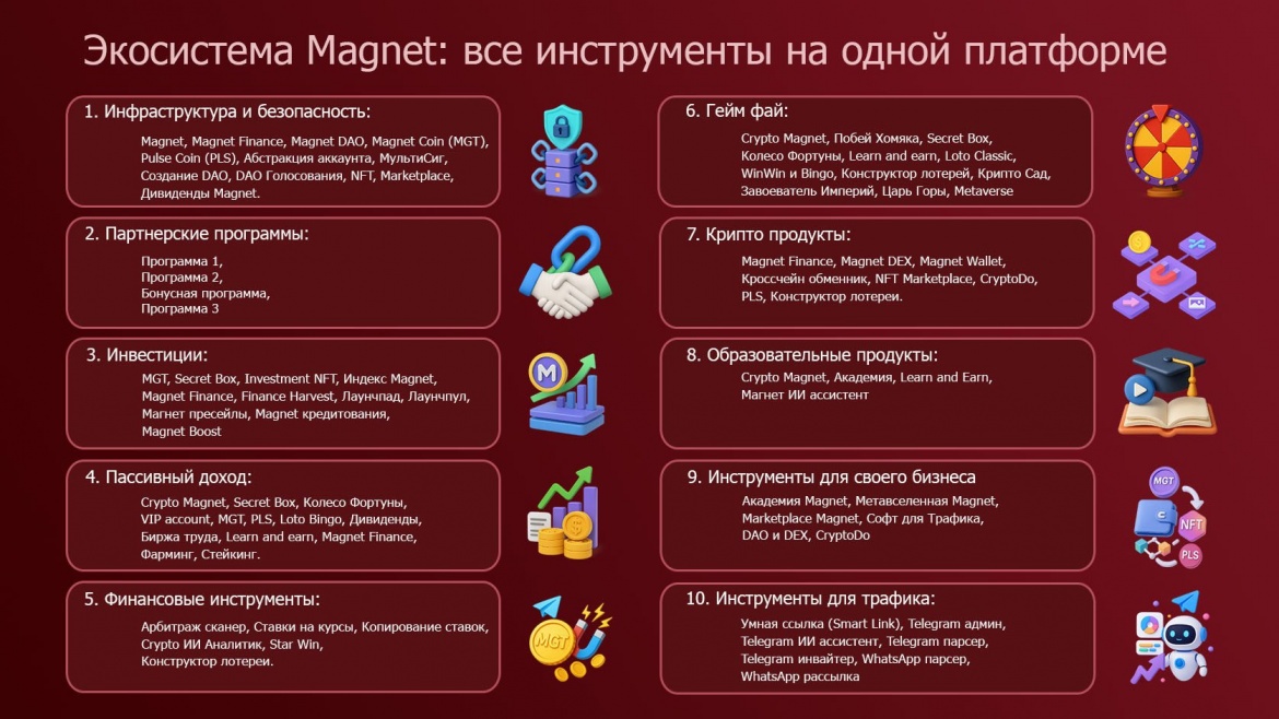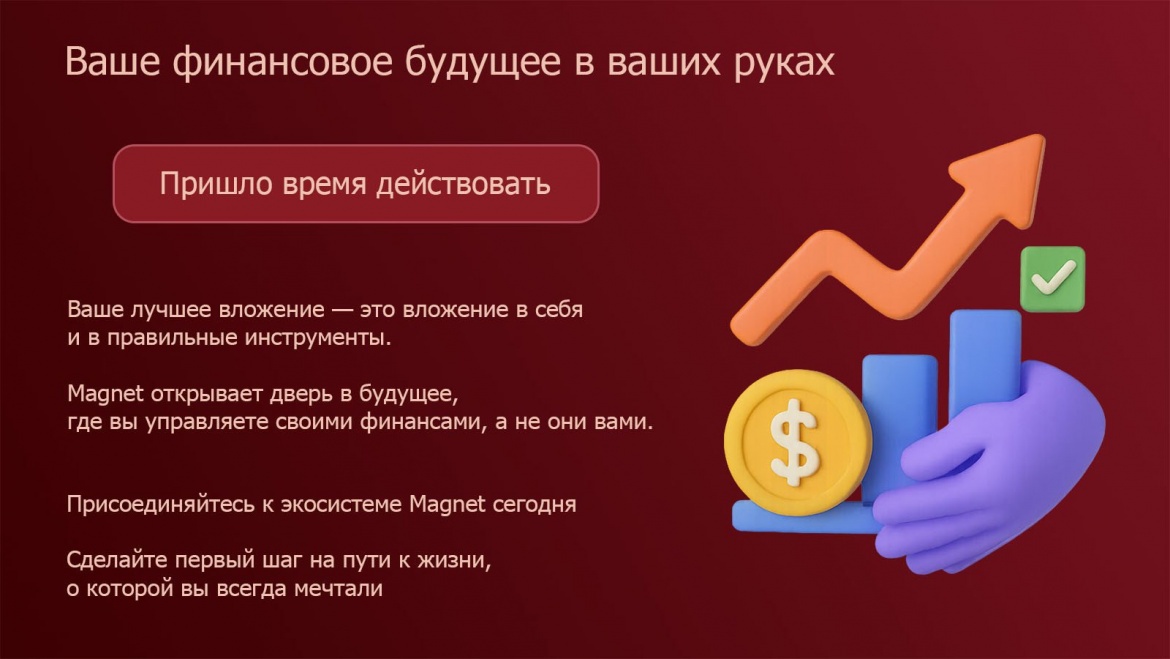 Поэтому не ждите! Не думайте! Присоединяйтесь к экосистеме Magnet сегодня!