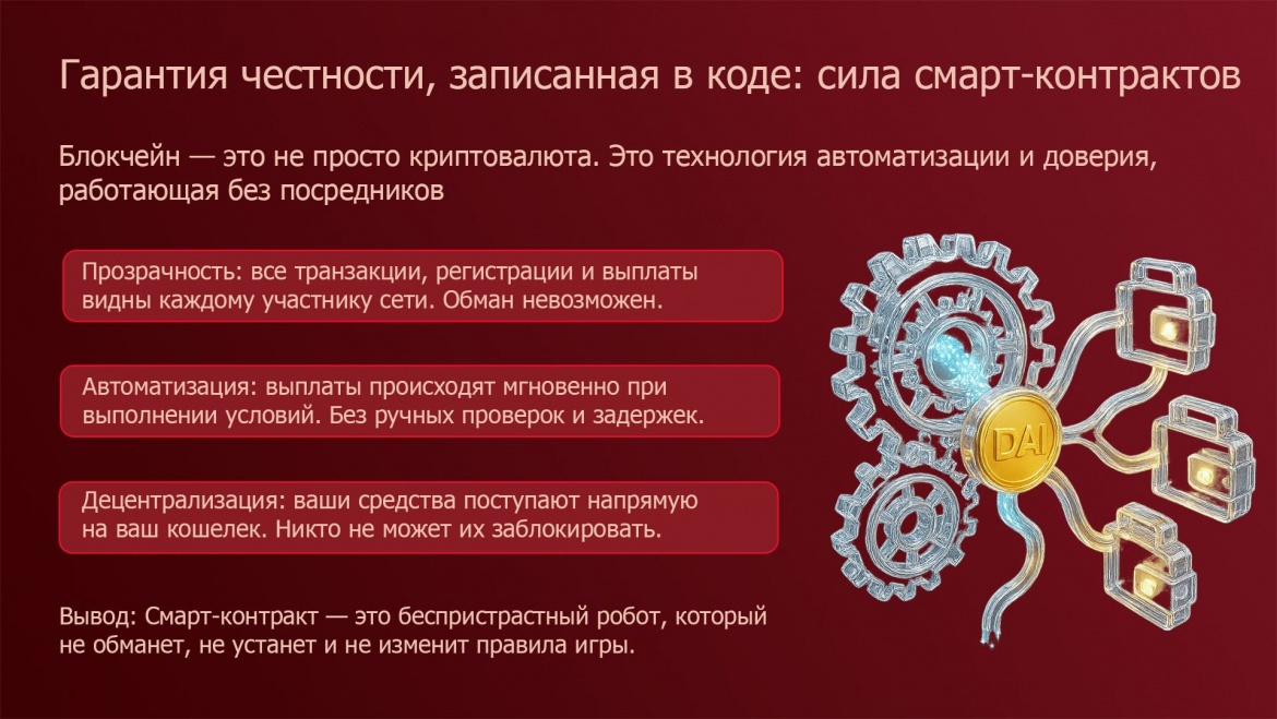 Какой бы путь вы ни выбрали, вы делаете главный шаг. Вы говорите "нет" старым системам. Вы входите в мир, где ваш заработок защищен математикой и кодом. Где прозрачность и честность — это не пустые слова, а основа всего.