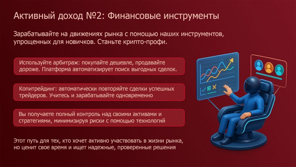 Это ваш шанс перестать быть наблюдателем и стать активным игроком в новой экономике. Это ваш путь от нуля к профессионалу!»
