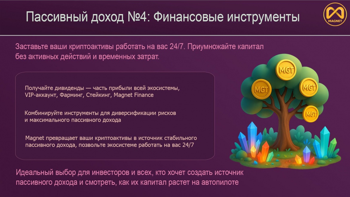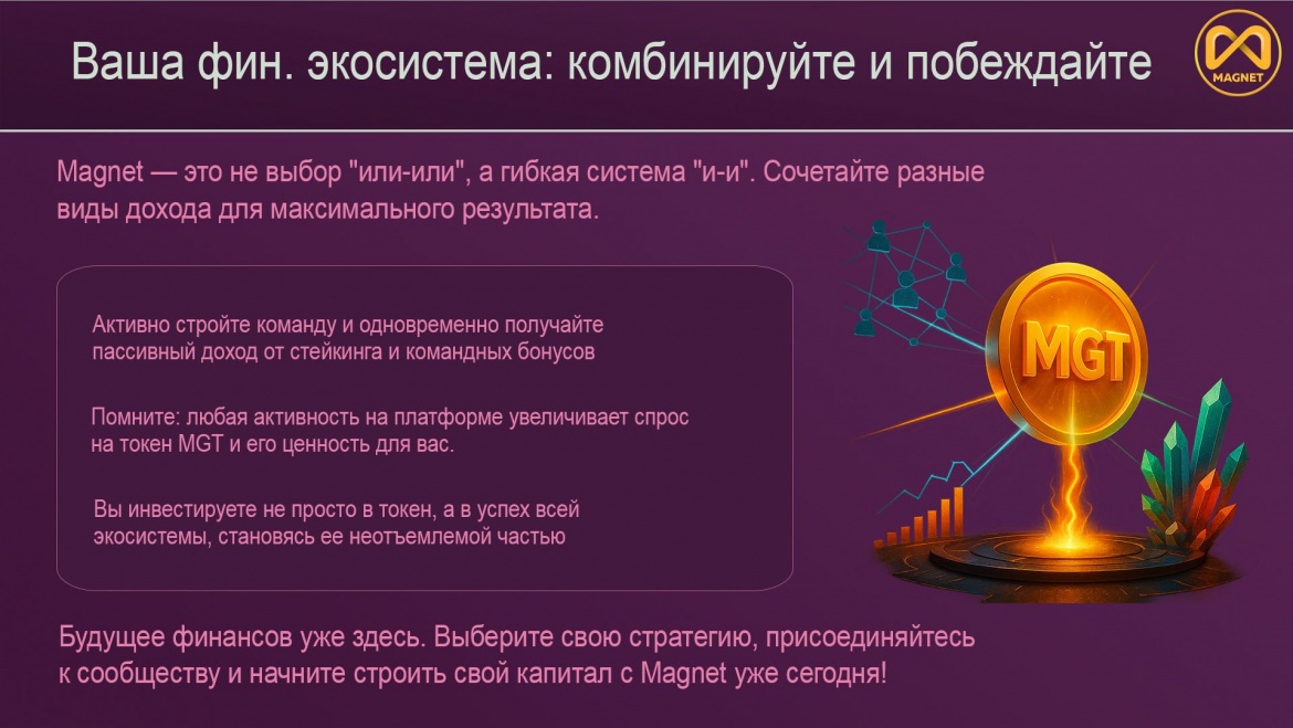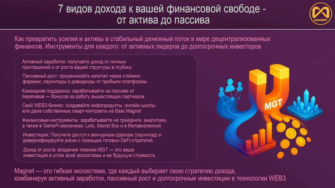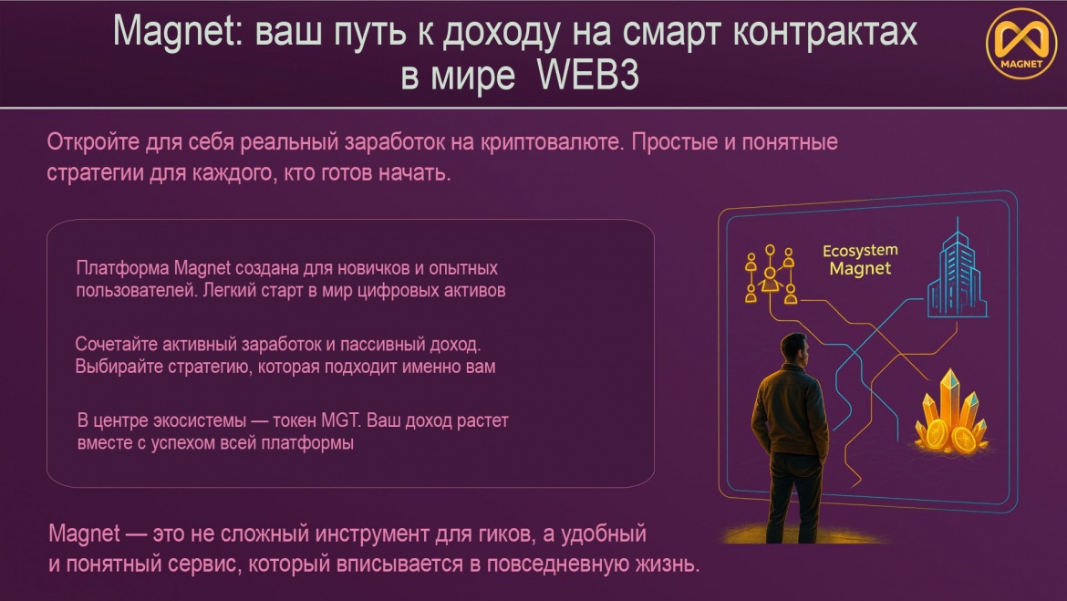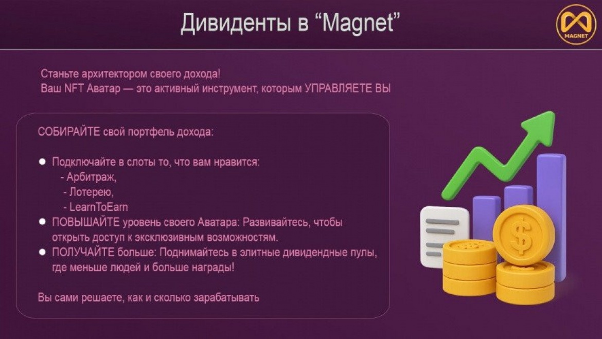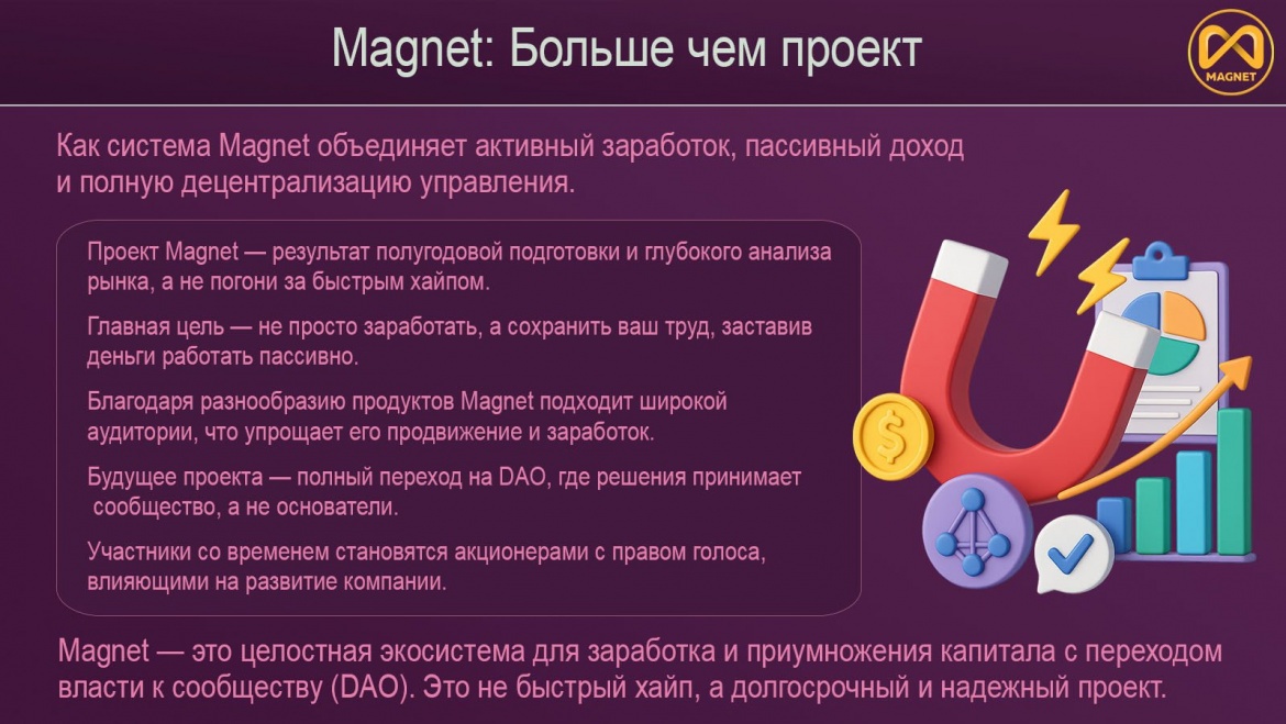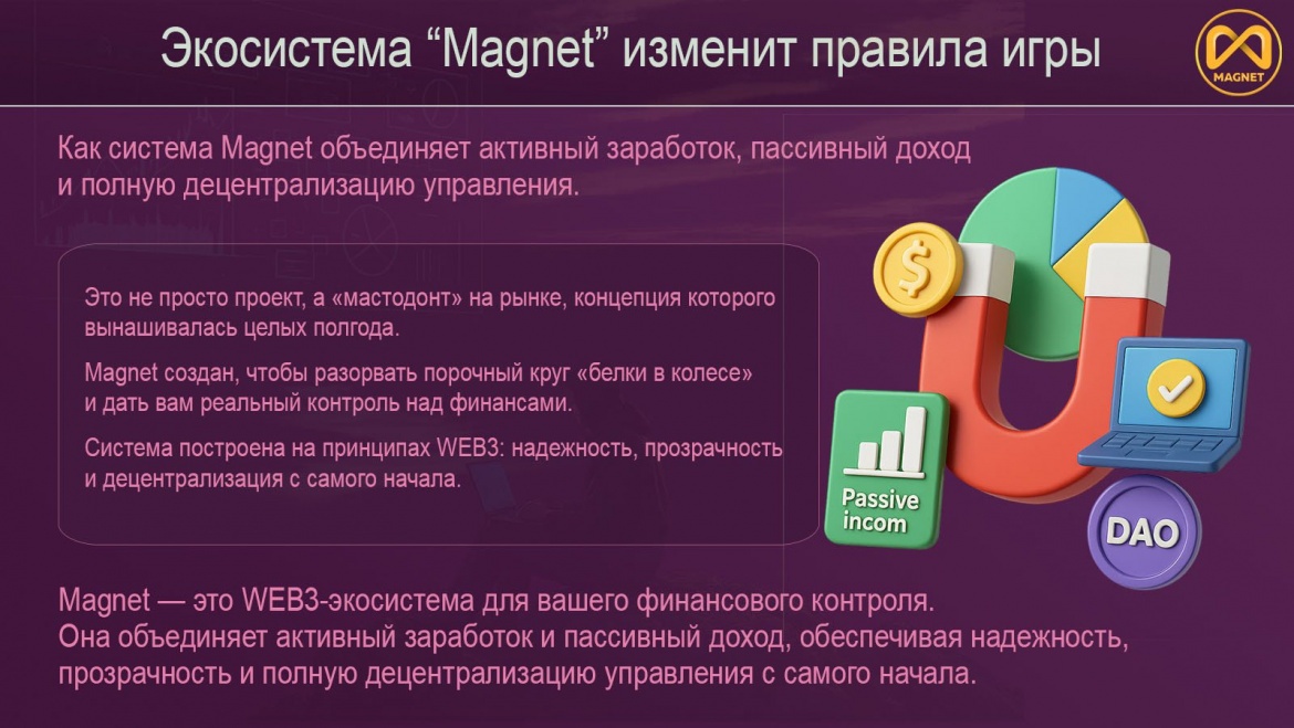 Magnet — это децентрализованная финансовая блокчейн-платформа, построенная на смарт-контрактах. Мы предоставляем высокоэффективные инструменты для создания вашего собственного высокодоходного бизнеса.