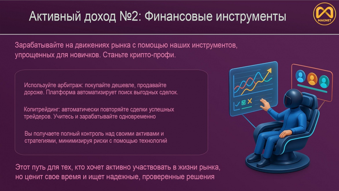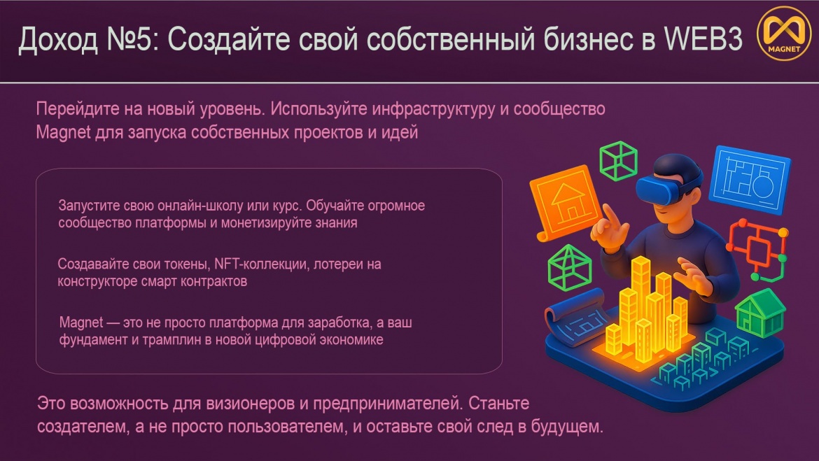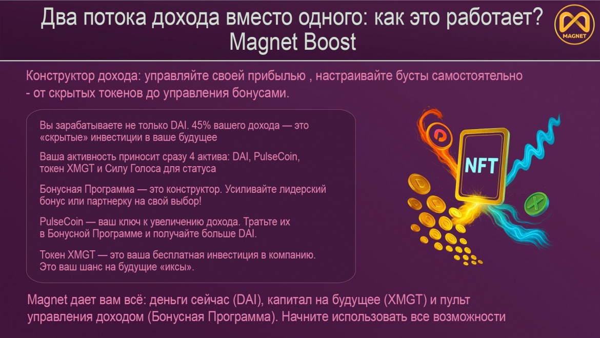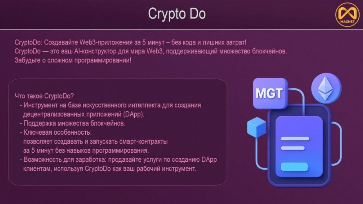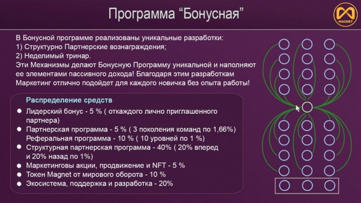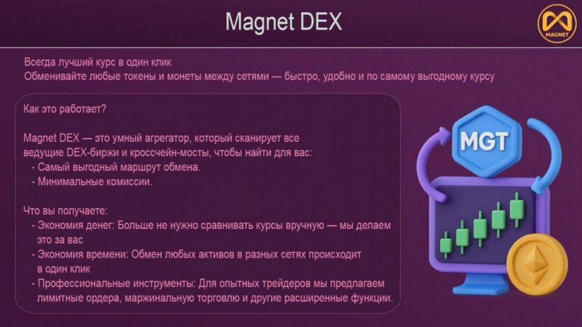 Magnet — это децентрализованная финансовая блокчейн-платформа, построенная на смарт-контрактах. Мы предоставляем высокоэффективные инструменты для создания вашего собственного высокодоходного бизнеса.