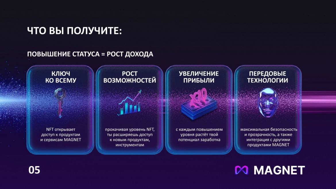 NFT в MAGNET — это не картинка, а статус и источник дохода. Это твой личный «пропуск» в мир Web3-возможностей и доходов.