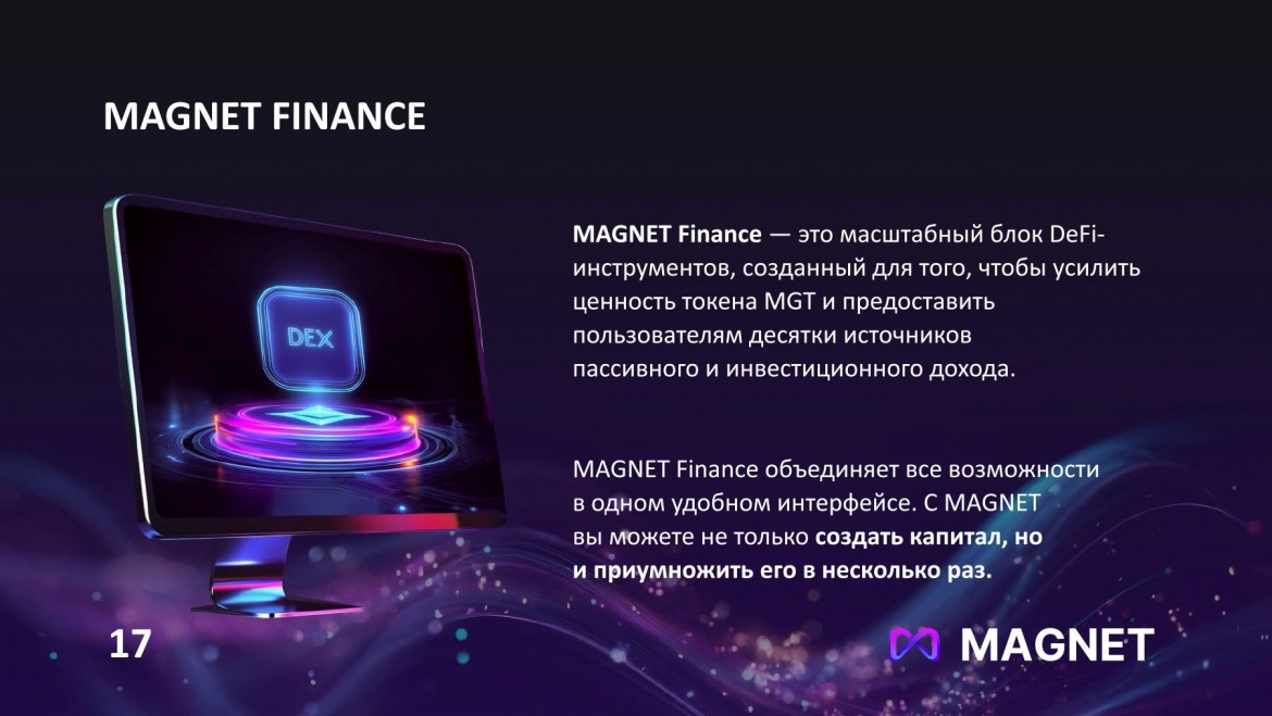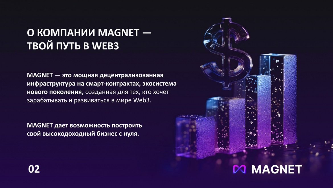 MAGNET — это мощная децентрализованная инфраструктура на смарт-контрактах, экосистема нового поколения, созданная для тех, кто хочет зарабатывать и развиваться в мире Web3.