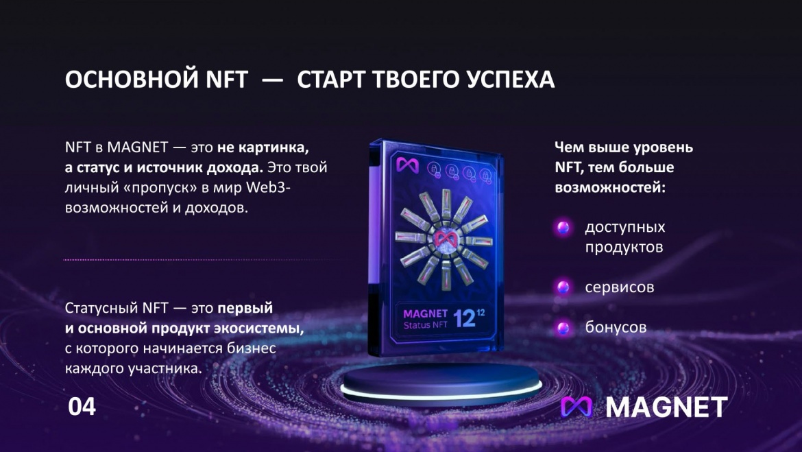 NFT открывает доступ к продуктам и сервисам MAGNET.