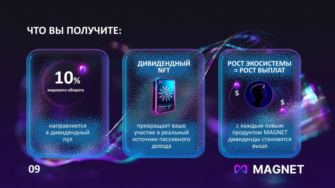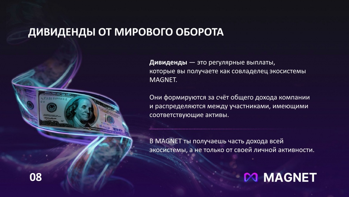 Дивиденды — это регулярные выплаты, которые вы получаете как совладелец экосистемы MAGNET.