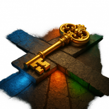 Промт для Midjourney: a glowing digital master key made of intricate circuits, unlocking multiple holographic doors labeled 'PulseCoin', 'Boost', 'MGT', data streams flowing from the key, futuristic, high-tech --ar 16:9